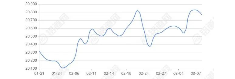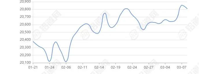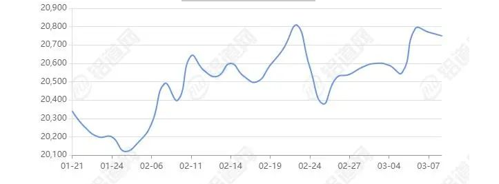 Shanghai futures aluminum 2025 March 10 Shanghai futures market price 20810 up or down -50, the lowest 20770,